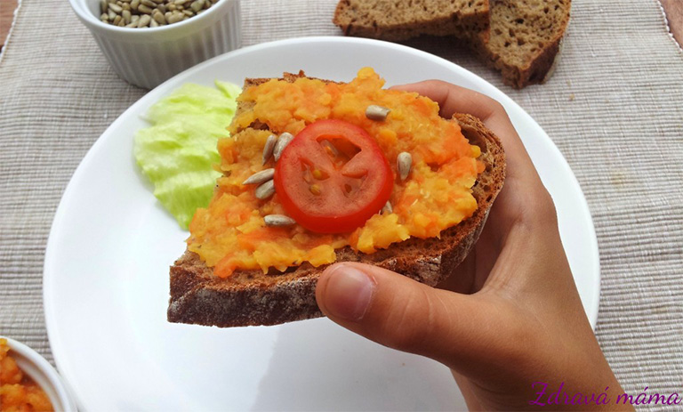 - Na závěr vše promícháme. Mažeme na oblíbené pečivo, posypeme slunečnicovými semínky.