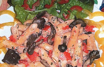 Postup: Těstoviny uvaříme v osolené vodě. Lososa nakrájíme na nudličky a krátce orestujeme na oleji. Na proužky pokrájenou cibuli osmahneme na oleji, přidáme těstoviny, nalejeme smetanu, přidáme bujon, pepř a vše promícháme. Smícháme s pokrájenou petrželkou a opečenými kousky lososa, případně dosolíme.